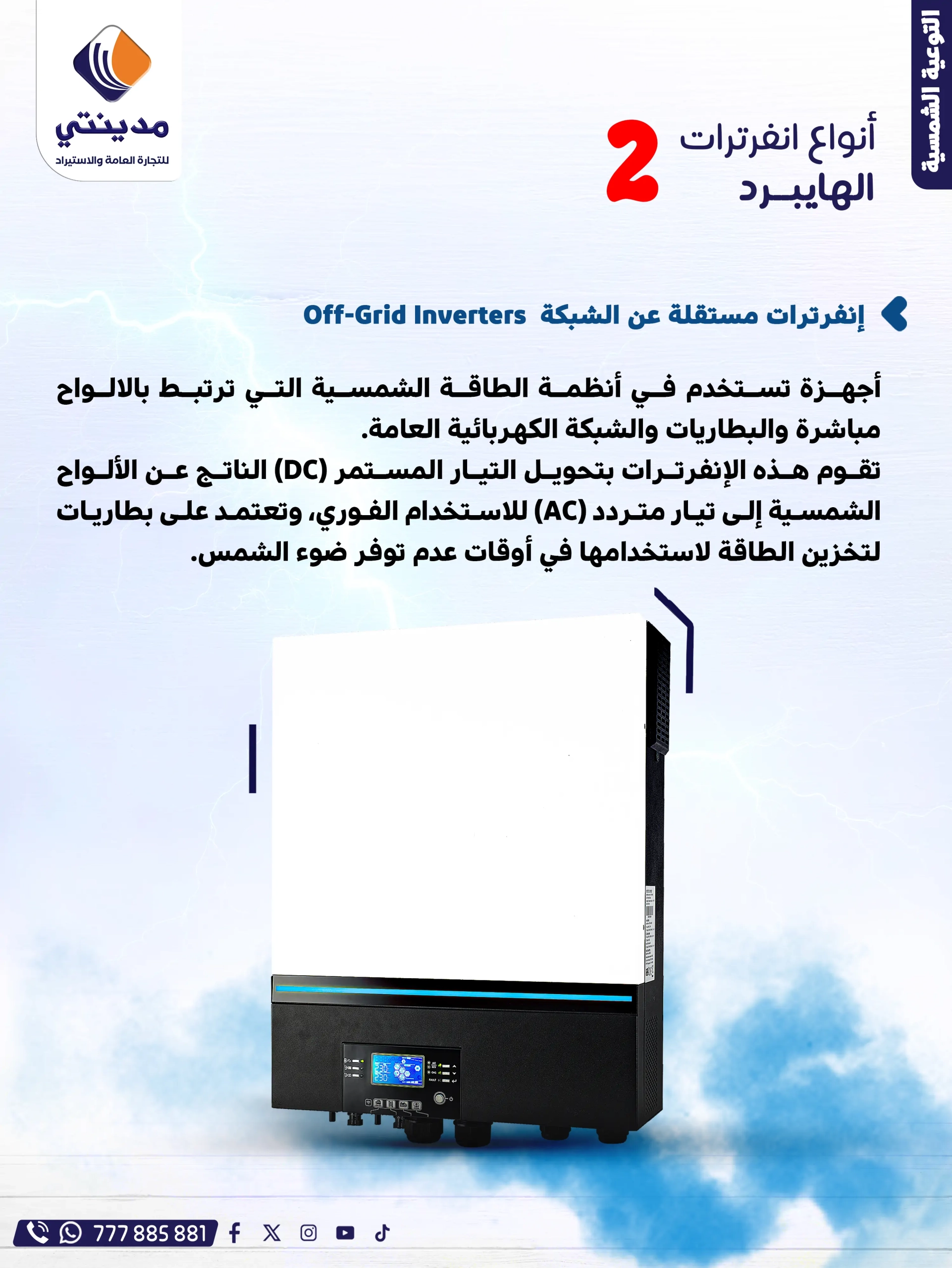 • الإنفرتر غير المتصل بالشبكة (Off-Grid):